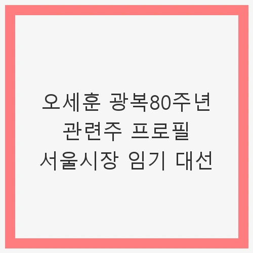 오세훈 시장이 대선 불출마를 선언한 가운데, 광복80주년을 맞아 관련주도 주목받고 있습니다. 광복80주년이라는 역사적인 의미가 부각됨에 따라, 관련 기업들의 주가도 영향을 받을 것으로 예상됩니다. 특히, 대선과 관련된 정치 테마주가 주목받고 있으며, 이는 향후 주식시장에도 큰 영향을 미칠 수 있습니다.