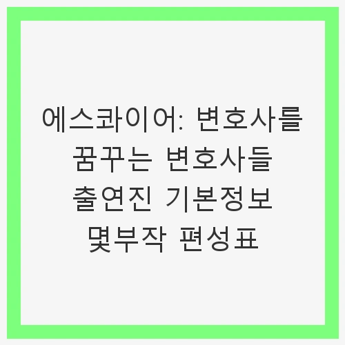 드라마에 대한 기대감이 날로 높아지는 가운데, JTBC의 새로운 법정 드라마 에스콰이어: 변호사를 꿈꾸는 변호사들이 오는 8월 2일 첫 방송을 시작하였습니다. 이 드라마는 변호사로서의 성장과 사회에서의 갈등을 다루며, 특히 주인공 강효민(정채연)과 그를 이끌어주는 파트너 변호사 윤석훈(이진욱)의 이야기가 중심이 됩니다. 드라마의 출연진과 방영 일정에 대한 정보는 물론, 그 배경과 드라마가 어떤 메시지를 담고 있는지 살펴보겠습니다.