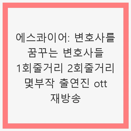 ‘에스콰이어’라는 제목은 무엇을 의미할까요? 이는 변호사에게 붙는 존칭으로, 로이어(법률가)와 같은 의미를 가지고 있습니다. 이 드라마는 단순히 법률 지식만으로는 해결할 수 없는 인간적 갈등과 성장을 중심으로 전개됩니다. 이를 통해 많은 이들이 법조계에 대한 새로운 시각을 가지게 될 것입니다. 이번 포스트에서는 에스콰이어의 첫 두 회차 줄거리, 몇 부작인지, 출연진, OTT 재방송 정보에 대해 자세히 알아보도록 하겠습니다.